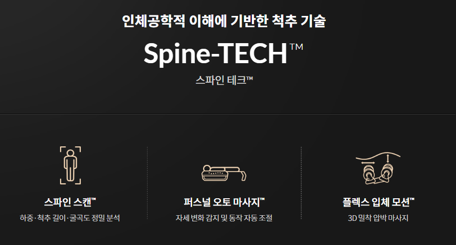 세라젬 v6 4개의 특화된 롤러 적용 내부발열도자로 경추와 척추라인을 따라 자동으로 높낮이를 조잘 할 수 있어 밀착 마사지 효과를 주고 척추 길이와 굴곡도를 스캔 및 분석하여 아이부터 성인까지 체형을 맞추어 마사지를 제공합니다.