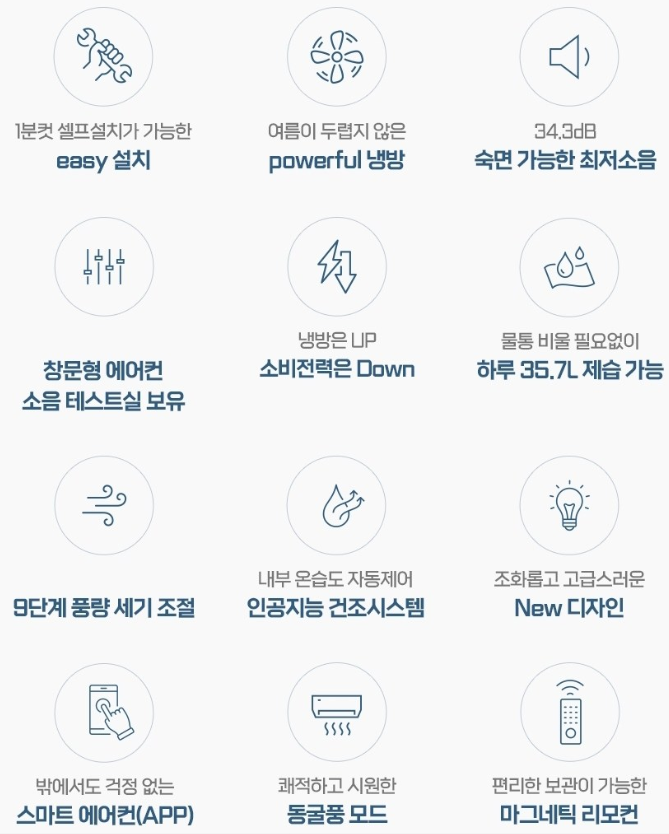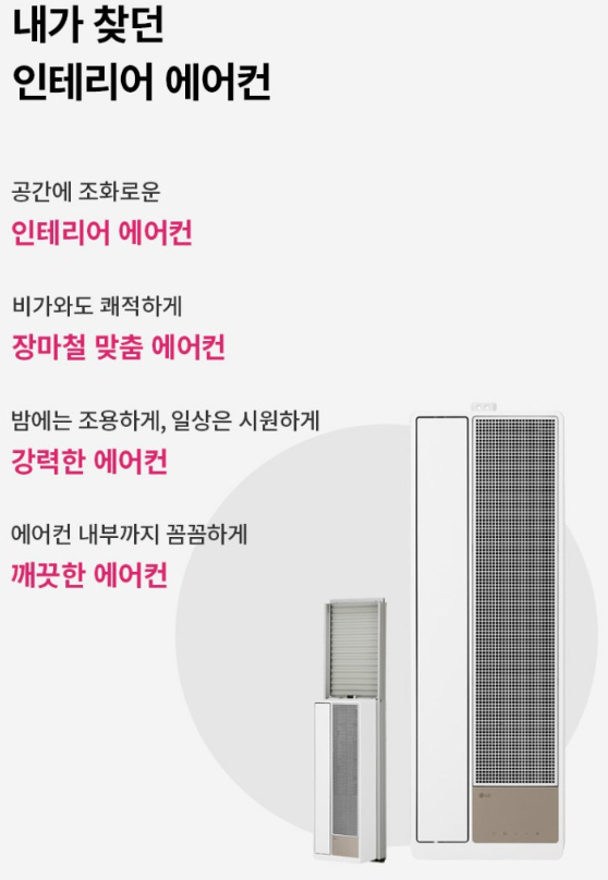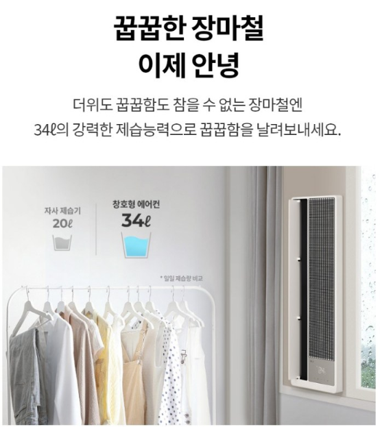 lg 창문형 에어컨은 공간을 신경쓰듯 인테리어에 어울리 듯한 모습을 가지고 있습니다. 또한 장마철 맞춤 에어컨으로도 알려져 있죠. 자사 제습기보다 강한 제습능력을 보여주는 lg 창문형 에어컨. 외부에서 비가 들어오지 못하도록 하여 비가 많이 오는 장마철에 안심하고 사용할 수 있겠습니다.