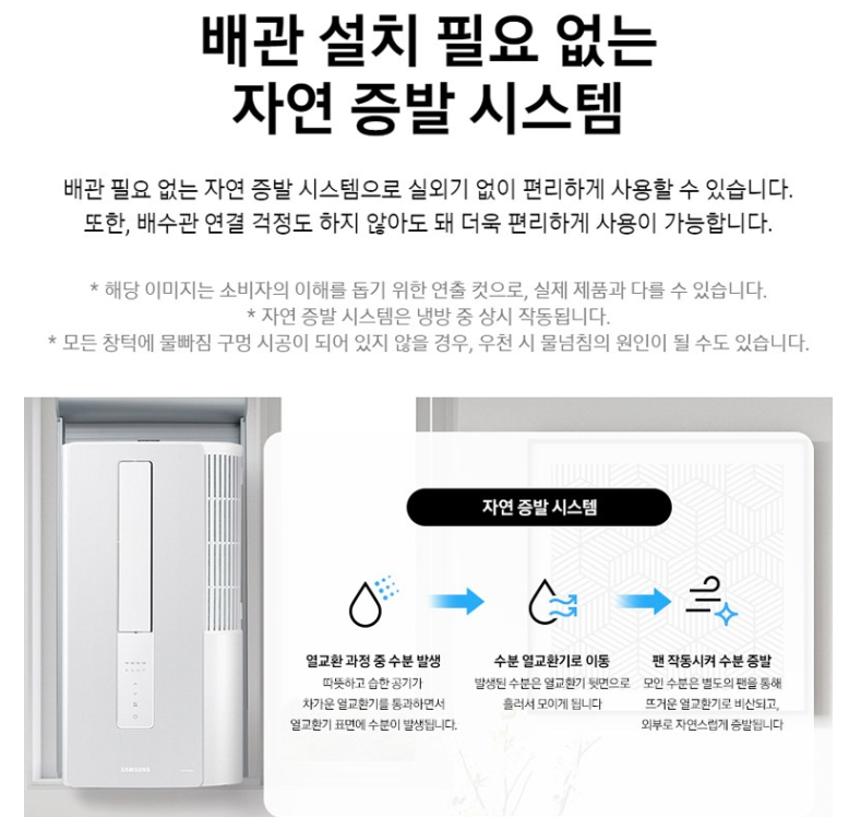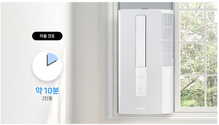 삼성 창문형 에어컨 추천 냉방 종료 후 삼성 창문형 에어컨 내부의 습기를 제거하기 위해 자동으로 건조해주는 자동 건조기능이 있어 관리가 편하고 필터 또한 물세척이 가능해 반 영구적으로 사용 가능합니다.